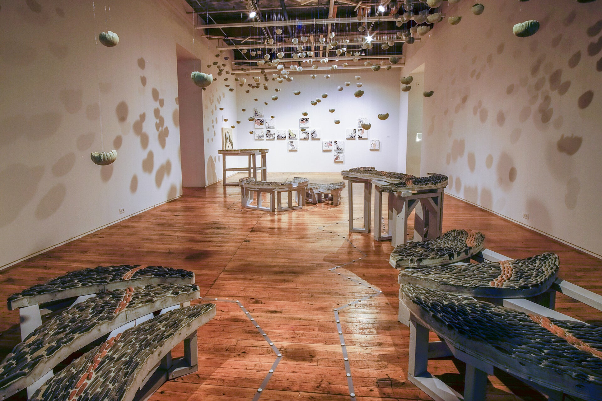 2 - HELD, co-solo show (Wy Joung Kou & Anna Camilleri) presented by Tangled Arts & Disability, in partnership with ReDefine Arts, 2023. Immersive & Interactive Installation: Ceramic & Glass Mosaic, Pebble Mosaic, Video, Sculpture. Supported by the OAC & TAC. Photography: Felicia Byron.
